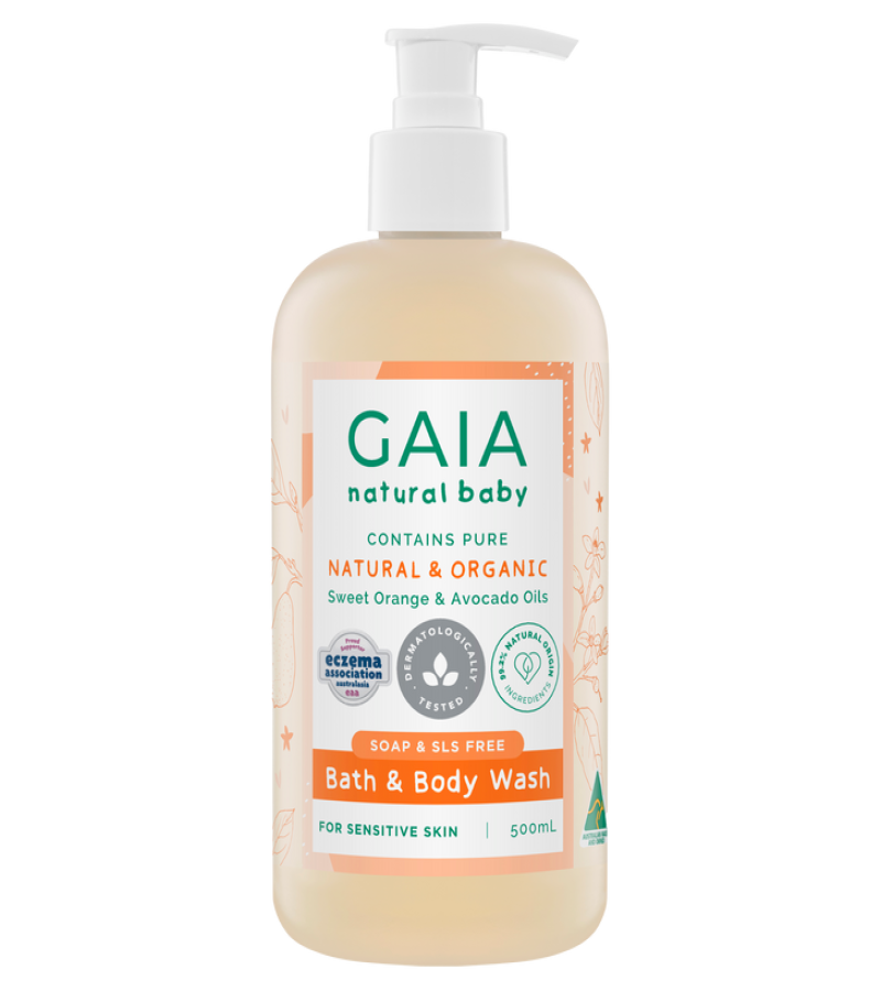 GAIA Natural Baby Bath and Body Wash. It’s a 2-in-1 calming gel product for the bath and the shower which means you don’t have to buy two separate products, saving you money whilst caring for newborns, toddlers and children’s skin without any irritation.