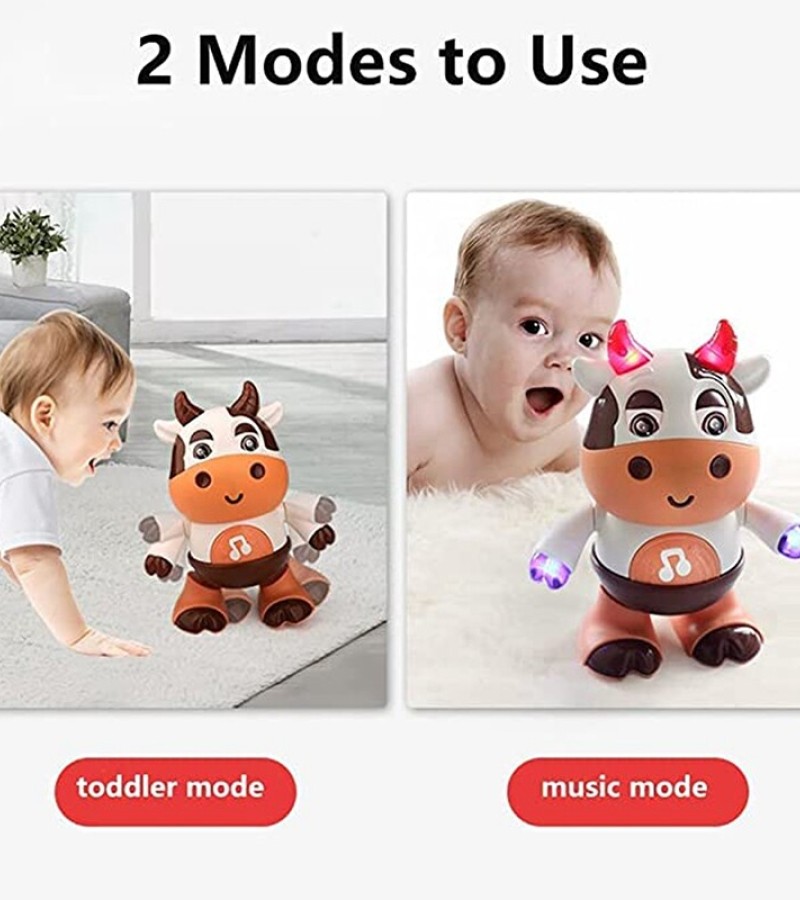 3.【Attract Children's Attention】— The colorful lights of baby cow toy attract children's attention in the shortest time, and the rich body movements and sounds can greatly arouse children's curiosity. It's available for kids dance together to the cool lights and music.