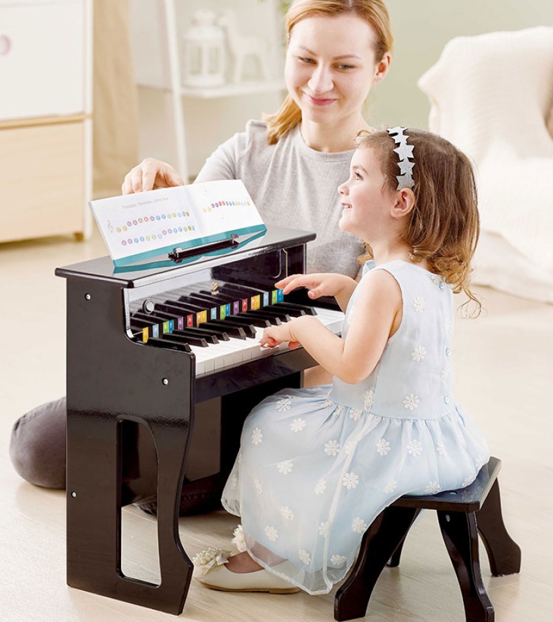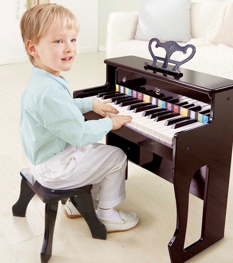 • DIFFERENT TIMBRES: Play the realistically-sized keys harder for a stronger tone, and play them softer for a lighter sound. The upright piano prepares children for advanced musical learning and fine-tunes motor skills
