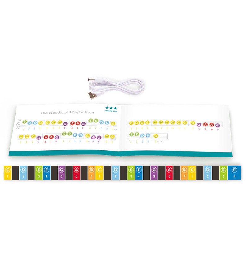 • YOUR MUSICAL TEACHER: This fantastic piano for little musicians features a removable color-note strip that fits behind the keys, guiding tiny fingers to the colored dots as per instructions in the music book, with its help your child can play a complete tune!