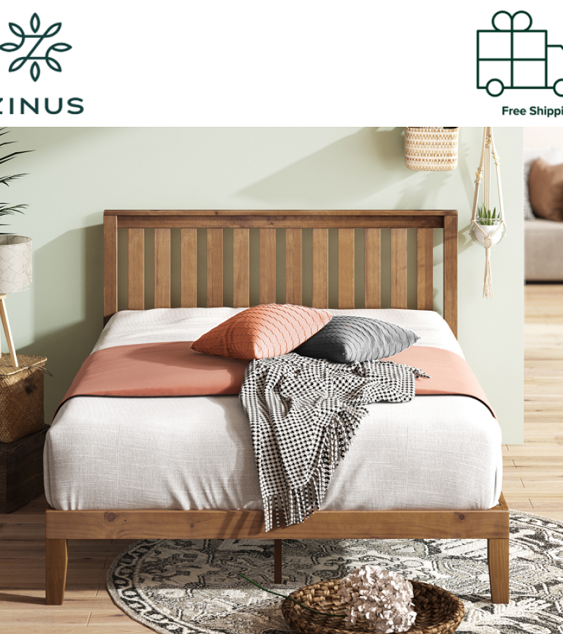 Beautiful natural wood details, a stylish headboard, and a solidly built frame make this bedframe the perfect bed to rest on. Whether you’re going for a farmhouse aesthetic or a more modern feel, Zinus Wood Platform Bed adds charm to any bedroom.